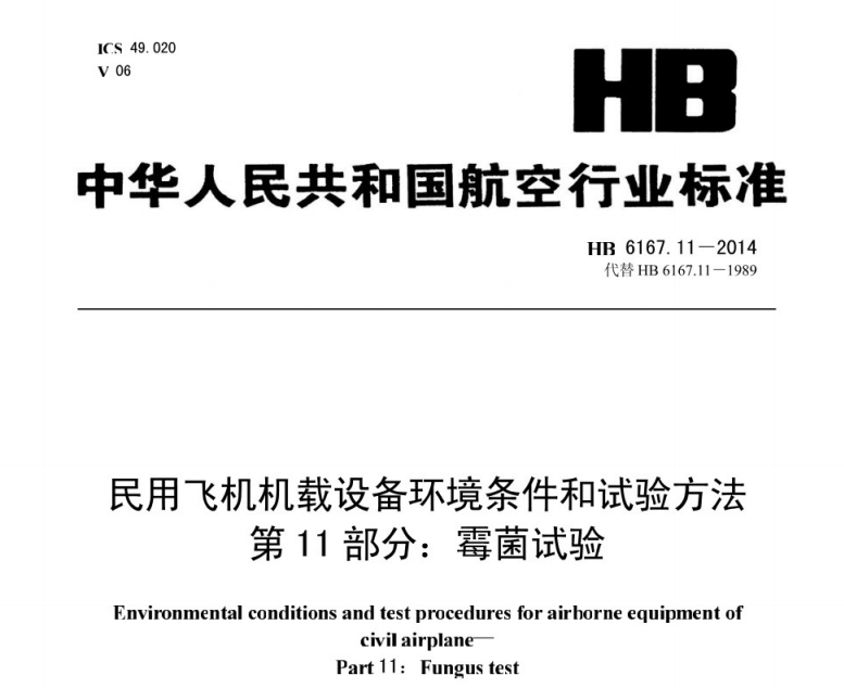 HB 6167.11-2014民用飞机机载设备环境条件和试验方法第11部分:霉菌试验